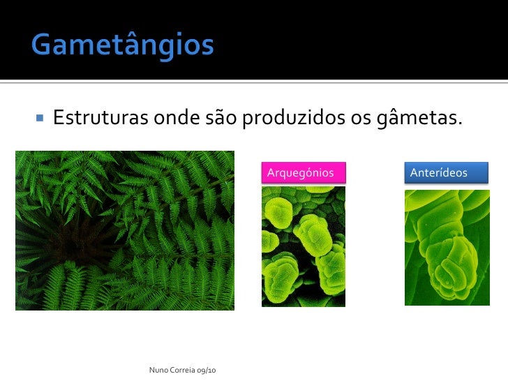 12. 12.  Estruturas onde são produzidos os gâmetas. Arquegónios Anterídeos Nuno Correia 09/10