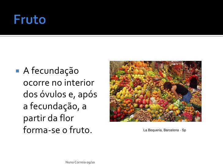19. 19.  A fecundação ocorre no interior dos óvulos e, após a fecundação, a partir da flor forma-se o fruto. La Boqueria, Barcelona - Sp Nuno Correia 09/10