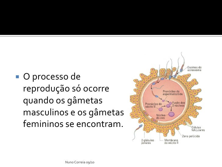 2. 2.  O processo de reprodução só ocorre quando os gâmetas masculinos e os gâmetas femininos se encontram. Nuno Correia 09/10