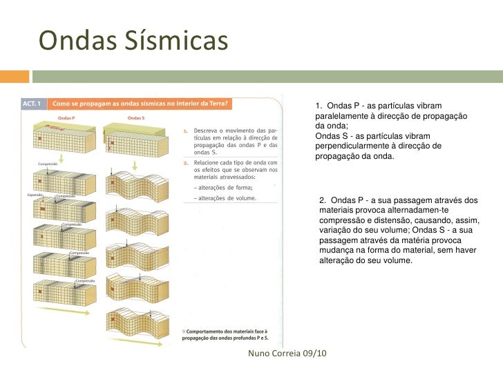 3. 3. Ondas Sísmicas  Movimento vibratório de partículas, sob a forma de onda, que se propaga a partir do local no interior da Terra onde o sismo tem origem Nuno Correia 09/10