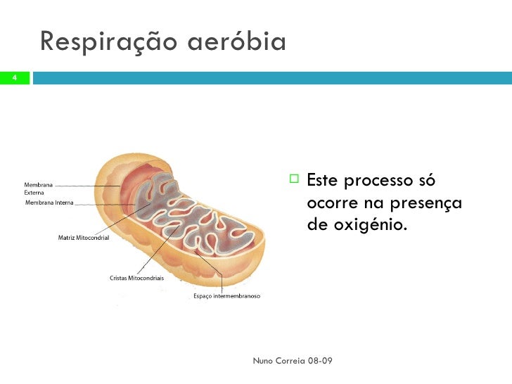 4. 4. Respiração aeróbia <ul><li>Este processo só ocorre na presença de oxigénio. </li></ul>Nuno Correia 08-09