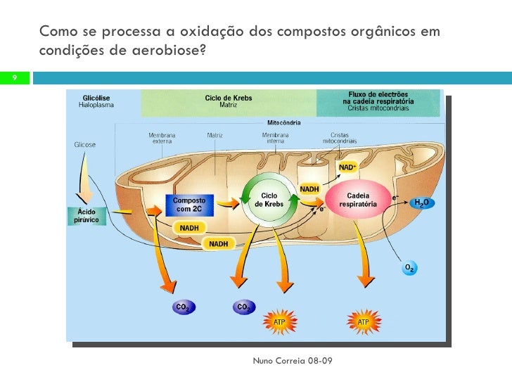 Como se processa a oxidação dos compostos orgânicos em condições de aerobiose? Nuno Correia 08-09