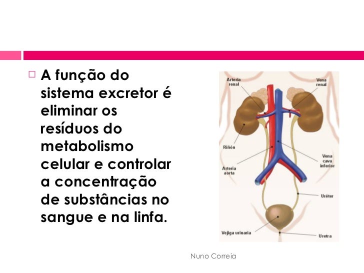 2. 2. <ul><li>A função do sistema excretor é eliminar os resíduos do metabolismo celular e controlar a concentração de substâncias no sangue e na linfa. </li></ul>Nuno Correia