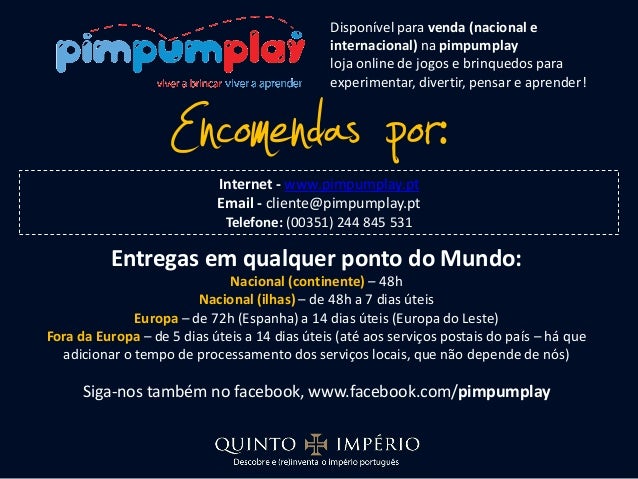 Disponível em www.pimpumplay.pt ou pelos telefones (00351) 244 845 531 ou (00351) 913 045 401.