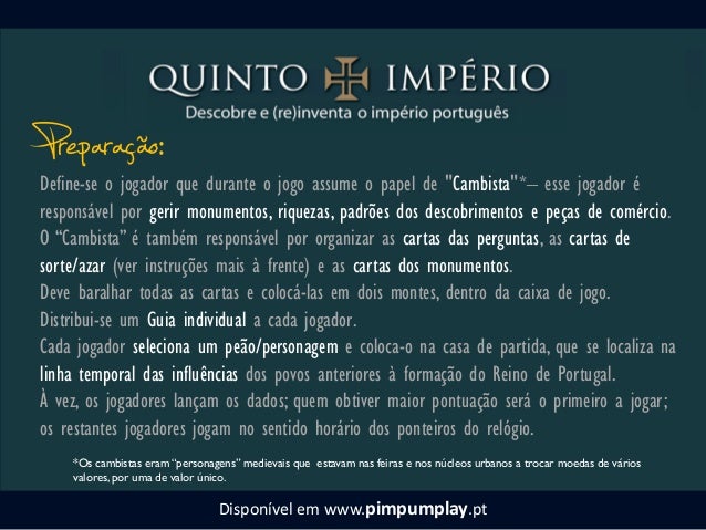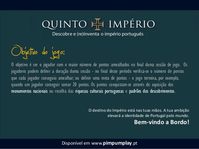 Da pimpumplay saiu o contributo para criar uma base de jogo que fosse capaz de entusiasmar todos aqueles que se orgulham da história e da cultura portuguesa, juntando miúdos (a partir dos 11 anos) e adultos em torno da preservação do nosso maior bem: a nossa identidade!