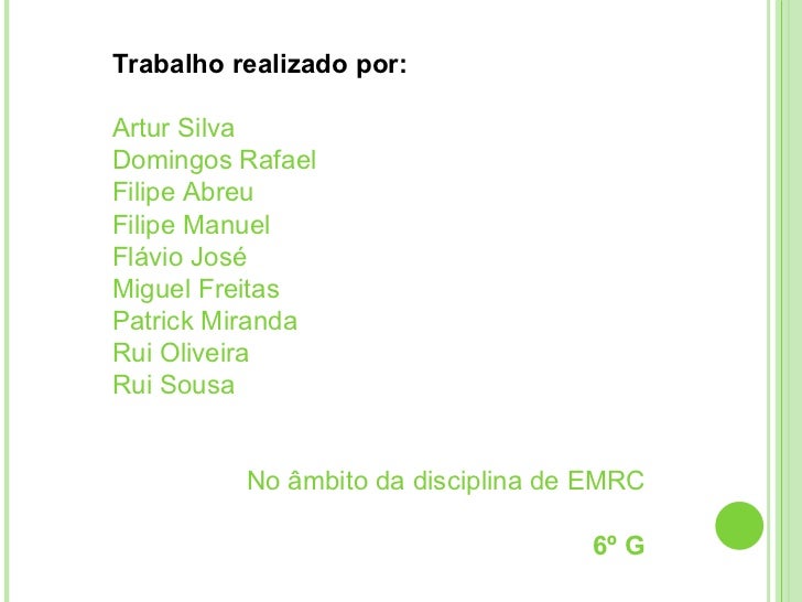17. 25. Trabalho realizado por: Artur Silva Domingos Rafael Filipe Abreu Filipe Manuel Flávio José Miguel Freitas Patrick Miranda Rui Oliveira Rui Sousa No âmbito da disciplina de EMRC 6º G
