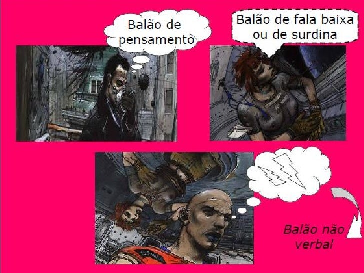 7. 7. O BALÃO é um espaço da vinheta,destacado, com um bico apontado ao emissor,onde se alojam falas ou pensamentos daspersonagens.