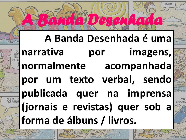 A Banda Desenhada     A Banda Desenhada é umanarrativa     por      imagens,normalmente       acompanhadapor um texto verb...