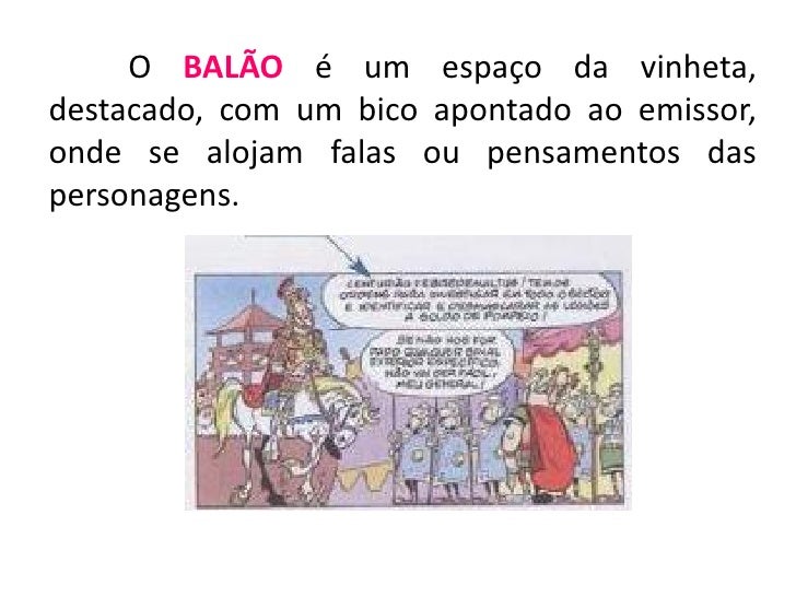 O BALÃO é um espaço da vinheta,destacado, com um bico apontado ao emissor,onde se alojam falas ou pensamentos daspersonage...