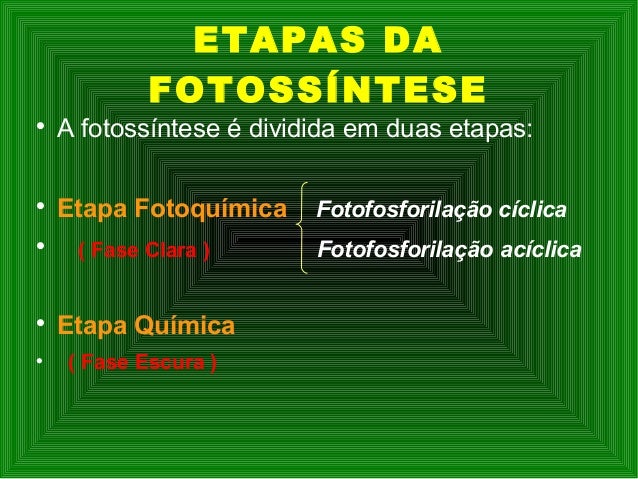 A fotossíntese é dividida em duas etapas: