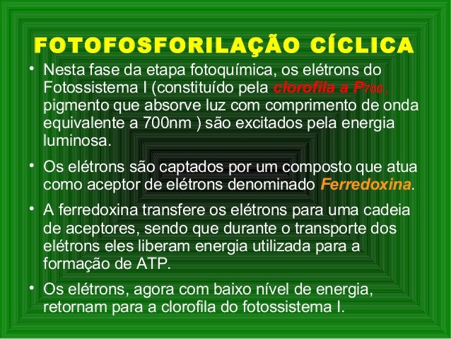 Etapa Fotoquímica Fotofosforilação cíclica
