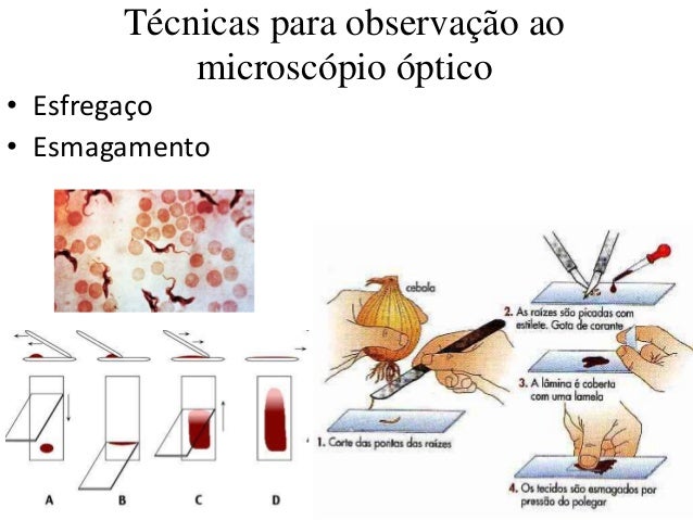 9. 9. Técnicas para observação ao microscópio óptico • Esfregaço • Esmagamento