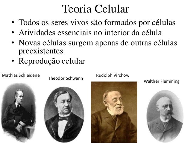 4. 4. Teoria Celular • Todos os seres vivos são formados por células • Atividades essenciais no interior da célula • Novas células surgem apenas de outras células preexistentes • Reprodução celular Mathias Schleidene Theodor Schwann Rudolph Virchow Walther Flemming
