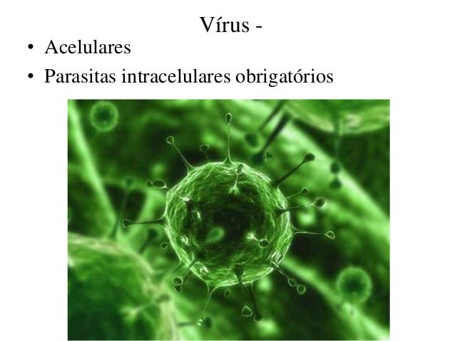 5. 5. Vírus - • Acelulares • Parasitas intracelulares obrigatórios