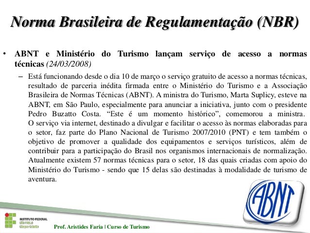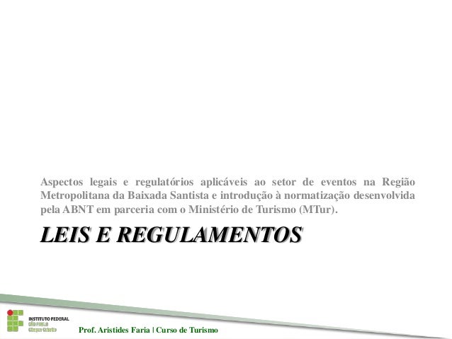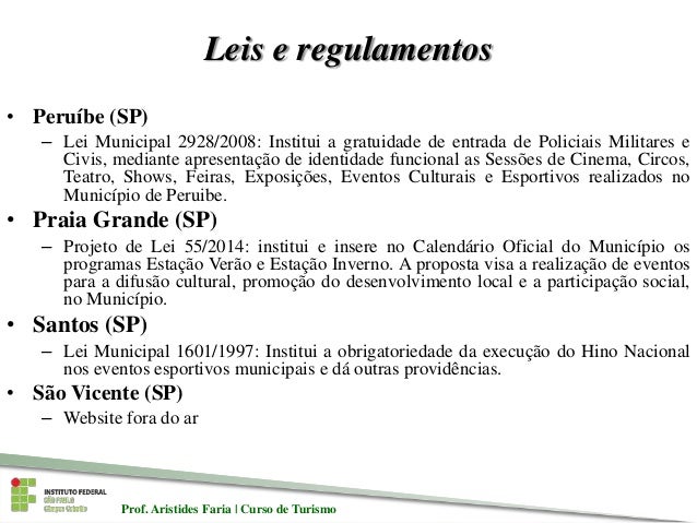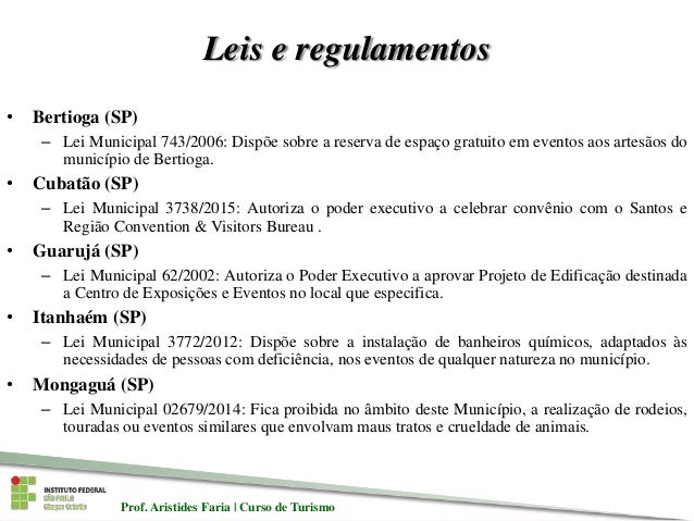 Material de apoio elaborado pelo Prof. Me. Aristides Faria Lopes dos Santos (aristidesfaria@ifsp.edu.br) para as disciplinas "Ecoturismo e Turismo de Aventura", "Gestão Pública", "Marketing e Turismo", "Organização de Eventos (I)" e "Fundamentos do Turismo (I)" do Curso Superior de Tecnologia em Gestão de Turismo do IFSP Campus Cubatão.