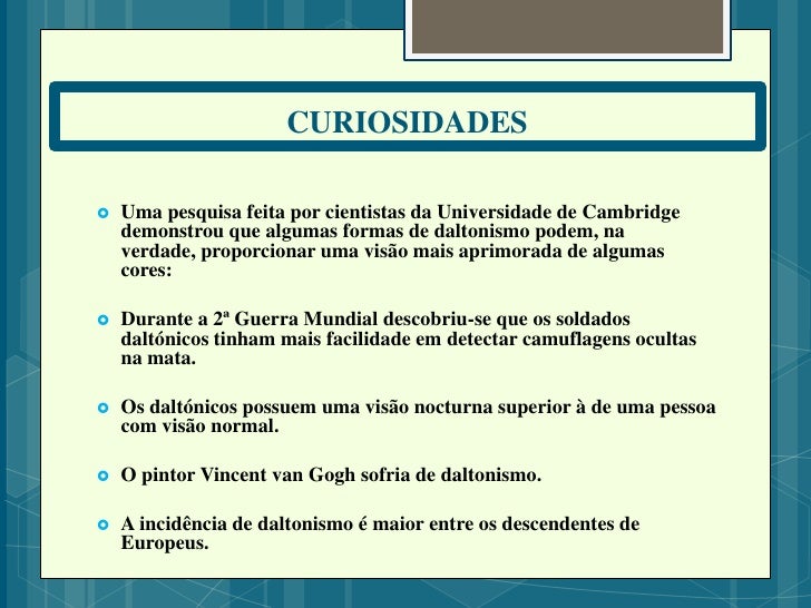 Pequena Apresentação sobre Daltonismo, no âmbito da genética. Disciplina de Biologia 12º Ano.
