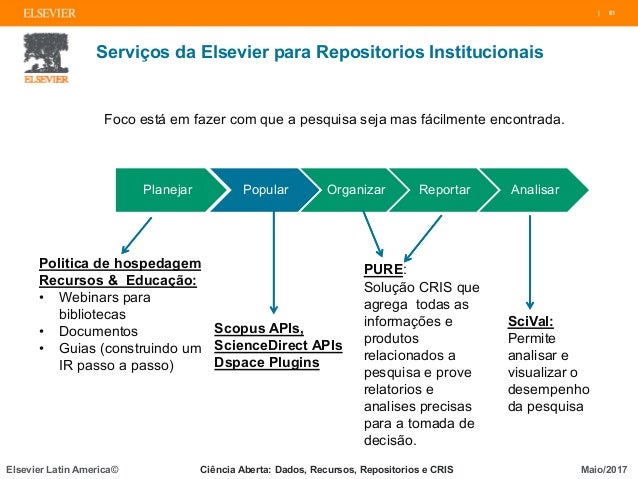 O SIBiUSP, em parceria com a Elsevier, convida para o Workshop sobre Sistema de Informação de Pesquisa Corrente (Current Research Information System – CRIS) que tem como objetivo apresentar as principais vantagens de uso dessa ferramenta para a gestão das atividades de pesquisa.