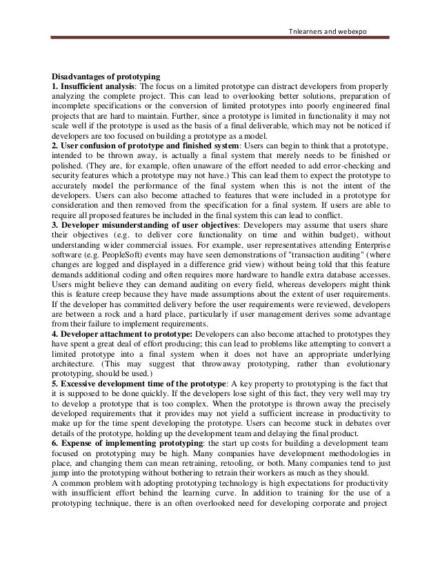 Disadvantages of prototyping