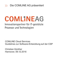 Die Comline AG stellt Richtlinien für die Software-Entwicklung innerhalb der Open Platform vor, die sich auf Architektur, Codebasen, Abhängigkeiten und der Trennung von Konfiguration und Code konzentrieren. Wichtige Konzepte sind CQRS zur Trennung von Lese- und Schreiboperationen, die Entwicklung verteilter Systeme mit speziellen Richtlinien für Backend-Dienste, und die Notwendigkeit, dass Entwicklungs- und Produktionsumgebungen möglichst ähnlich bleiben. Zudem wird Wert auf Elastizität und Verfügbarkeit gelegt, um eine agile und effiziente Softwarebereitstellung zu gewährleisten.