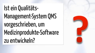 Ein Qualitätsmanagementsystem (QMS) ist für die Entwicklung von medizinprodukten-software notwendig, um gesetzliche Anforderungen zu erfüllen, insbesondere die Validierung gemäß IEC 62304. Obwohl ein QMS nicht gesetzlich vorgeschrieben ist, ist es ohne solches nicht sinnvoll, medizinische Software zu entwickeln. Unterstützung kann durch Prof. Dr. Christian Johner in Anspruch genommen werden.