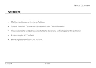 Neue IT- und Telekommunikationslösungen bieten dem Care-Sektor Unterstützung bei aktuellen Herausforderungen, wobei das richtige Verhältnis zwischen Kosten und Nutzen entscheidend ist. Die Konvergenz von Informations- und Kommunikationstechnologien verändert die Anforderungen an die IT-Landschaft, was zu steigenden Kosten und dem Bedarf an effizientem Projektmanagement führt. Handlungsempfehlungen betonen die Relevanz von IP-Telefonie und offenen Lösungen zur Kostensenkung und warnen davor, sich ausschließlich von technischen Innovationen leiten zu lassen.