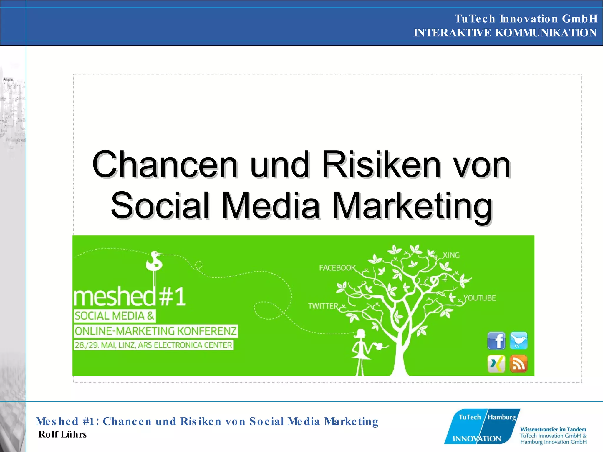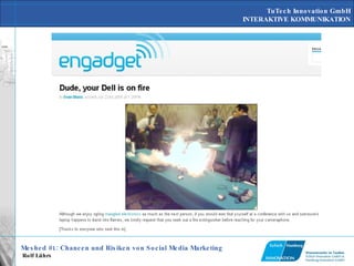 Das Dokument erörtert die Chancen und Risiken des Social Media Marketings und die transformative Rolle des Internets in der Massenkommunikation. Technologische Entwicklungen haben die Art der Kommunikation verändert, indem sie interaktive Elemente einführten, was sowohl neue Geschäftsmodelle als auch Herausforderungen für Unternehmen mit sich brachte. Fallstudien bekannter Unternehmen zeigen, wie notwendige Anpassungen an diese neuen Medien sowohl Krisenmanagement als auch Innovationsförderung erfordern.