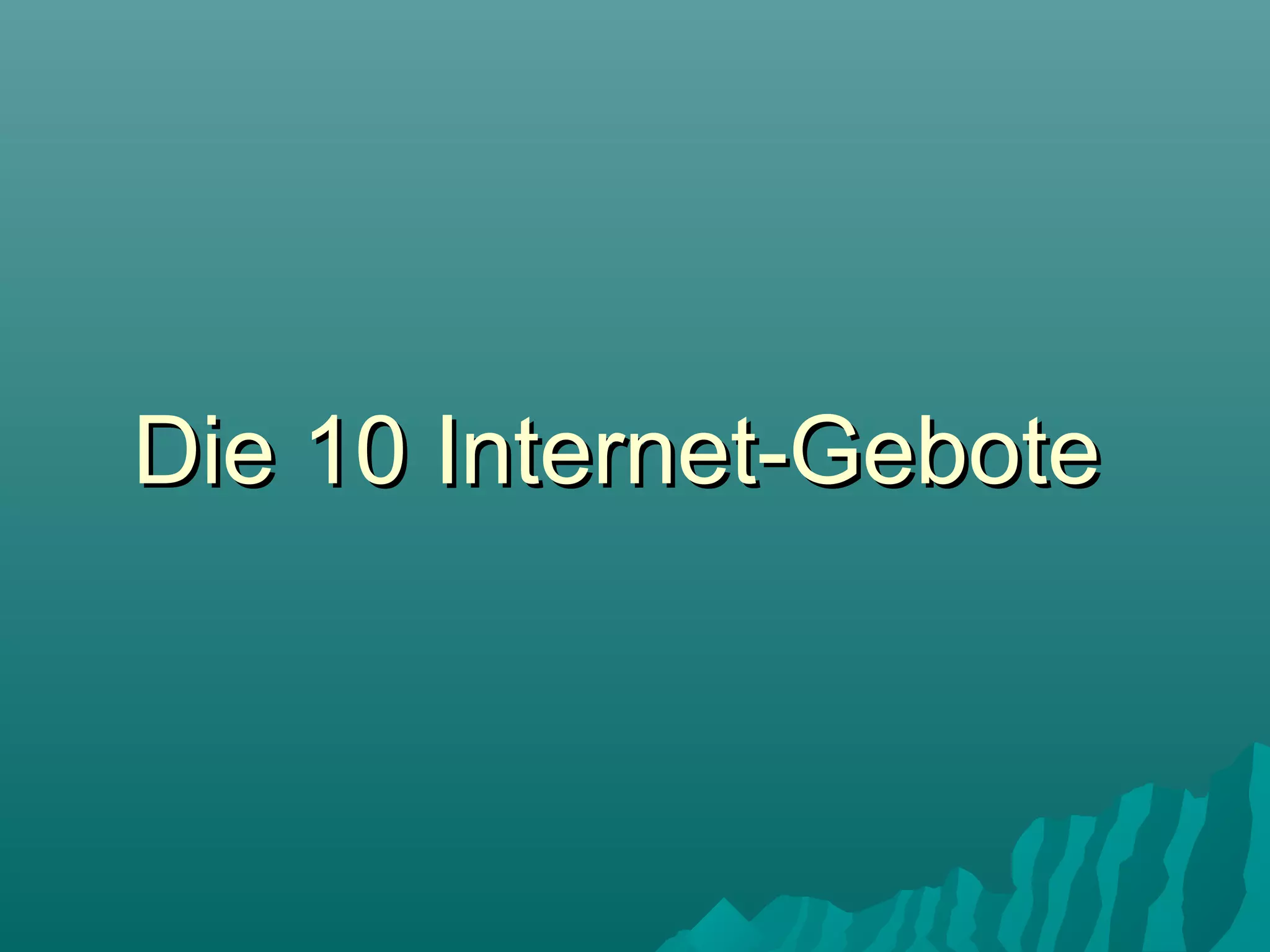 Die 10 Internet-Gebote bieten wichtige Richtlinien für die Gestaltung und Nutzung von Webseiten. Dazu gehören Empfehlungen wie die Vermeidung von schwarzen Hintergründen mit grauem Text, das Nutzen von externen Links, und das Verlinken des Logos zur Startseite. Weitere Punkte betonen die Notwendigkeit, die Besucher nicht mit Pop-ups oder übermäßigen Bannern zu belästigen und eine klare, lesbare Schrift zu wählen.