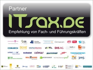 Das Dokument enthält Informationen zu Community-Trainings, Gehaltsbenchmarks und Job-Tickets, die von verschiedenen IT-Partnern in Deutschland angeboten werden. Es werden Rekrutierungskanäle, die Suche nach spezifischen Fachkräften und die Ergebnisse von Community-Events und Bewerbungen aufgeführt. Zudem gibt es Details zu den Jobticket-Konditionen, die den Mitarbeitern Ermäßigungen auf öffentliche Verkehrsmittel bieten.