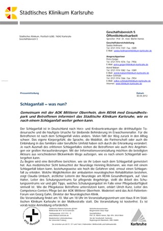 Das städtische Klinikum Karlsruhe veranstaltet am 10. Mai ein Informationsforum zum Thema Schlaganfall, um Betroffenen und Angehörigen Wege aufzuzeigen, wie sie mit den Veränderungen nach einem Schlaganfall umgehen können. Experten aus verschiedenen Bereichen, einschließlich Neurologie und Pflege, werden wertvolle Informationen und Unterstützungsmöglichkeiten bereitstellen. Die Veranstaltung ist kostenfrei und eine Anmeldung ist nicht erforderlich.