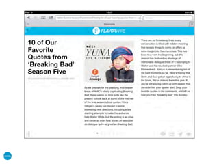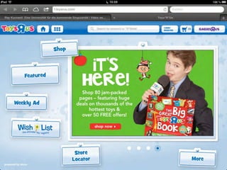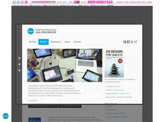 Das Dokument beschreibt die sieben Schritte zur erfolgreichen Gestaltung von Tablet-Webseiten, wobei der Fokus auf Benutzererfahrung, Benutzererwartungen und technische Aspekte liegt. Es betont die Bedeutung von Einfachheit, einer optimierten Benutzeroberfläche und der Nutzung von responsivem Webdesign. Zudem werden verschiedene Nutzungsszenarien und demografische Informationen zu den Zielgruppen behandelt.
