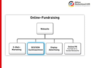 Das Dokument behandelt die Bedeutung von Suchmaschinenmarketing (SEA) für Fundraising-Aktivitäten, insbesondere für gemeinnützige Organisationen. Es werden Strategien und Vorteile des Online-Marketings aufgezeigt, darunter die Messbarkeit von Kampagnen und die Nutzung von Google Grants für kostenlose Anzeigen. Zudem werden spezifische Tipps zur Optimierung von Kampagnen und zur Keyword-Recherche gegeben.