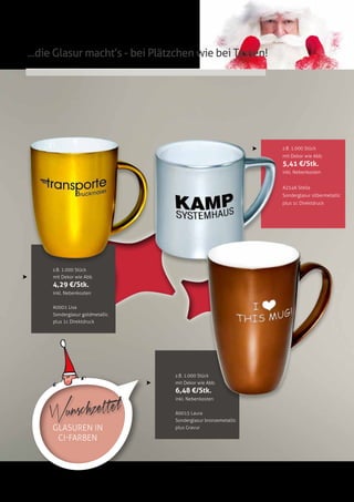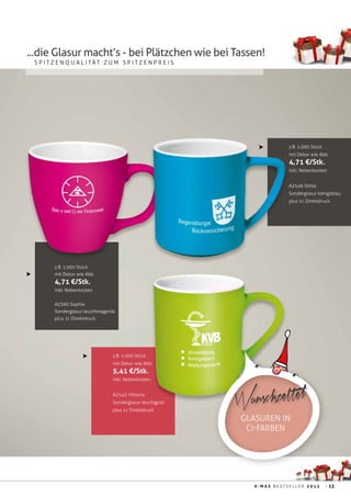 Das Dokument enthält eine Preisliste für verschiedene Produkte namens 'cleverplan' in unterschiedlicher Farbigkeit und Stückzahl, einschließlich 1-farbig, 2-farbig, 3-farbig und 4-farbig, mit Preisen pro Stück aufgelistet für Stückzahlen von 50 bis 1000. Es enthält auch Informationen zu weiteren Produkten wie DIN A4 und DIN A5 in unterschiedlichen Auflagen und Farben sowie zusätzliche Gebühren für Werbeanbringung. Insgesamt gibt es Preise für verschiedene Mengen an Drucksachen, die in unterschiedlichen Farben angeboten werden.