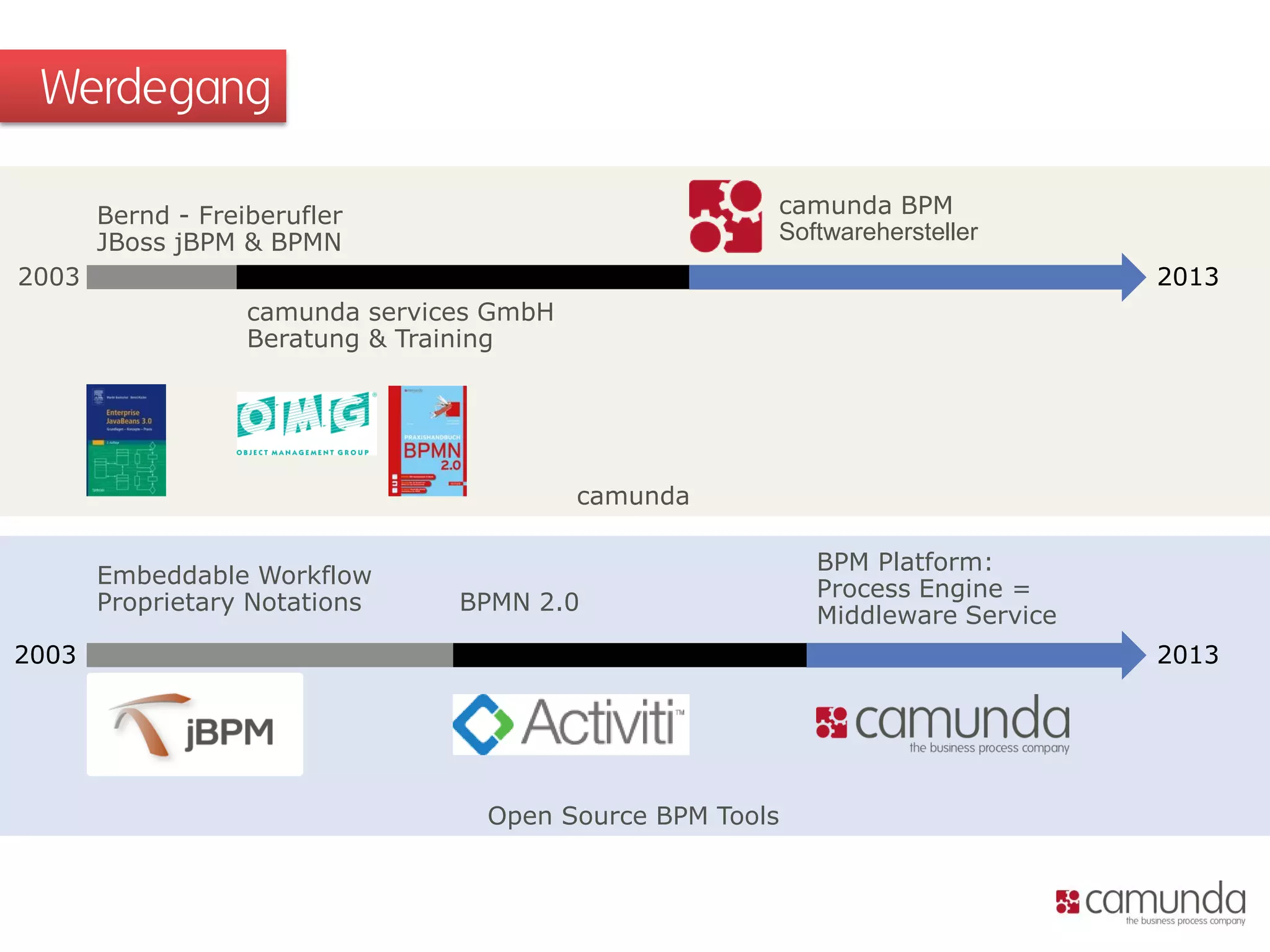 Das Dokument beschreibt die Implementierung und den Einsatz von Open Source BPM mit BPMN 2.0 und Java durch die Camunda Services GmbH, die als Beratung und Softwareanbieter auftritt. Es wird auf verschiedene Branchen, Anwendungsfälle und die Vorteile von Camunda BPM im Vergleich zu proprietären Lösungen eingegangen, insbesondere auf die Flexibilität und Anpassungsfähigkeit der Software. Zudem wurden Erfahrungen von bestehenden Kunden und deren positive Rückmeldungen zu den Camunda BPM Lösungen hervorgehoben.