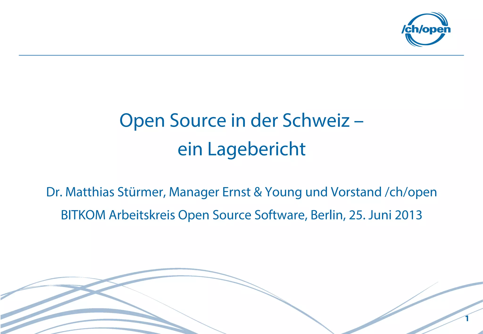Das Dokument beschreibt die ICT-Landschaft in der Schweiz und die Rolle von Open Source Software (OSS) in der öffentlichen Verwaltung und Wirtschaft. Es werden verschiedene Initiativen und Studien vorgestellt, die die Nutzung, Vorteile und Herausforderungen von OSS beleuchten, sowie die Aktivitäten des Vereins /ch/open zur Förderung offener Systeme und Standards. Ferner wird auf die parlamentarische Gruppe Digitale Nachhaltigkeit eingegangen, die sich für den Zugang zu Open Source und offenen Daten einsetzt.
