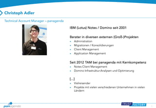 Das Dokument beschreibt die Herausforderungen und Überlegungen beim Upgrade auf IBM Notes 9, einschließlich der signifikanten Zunahme an Dateien und Einstellungen, die mit den neueren Versionen verbunden sind. Es wird auf die administrativen und technischen Herausforderungen eingegangen, die bei Migrationen und der Aktualisierung von Installationen auftreten können. Zudem wird das MarvelClient-Tool vorgestellt, das dabei helfen soll, die Upgrade-Prozesse zu optimieren und zu verwalten.