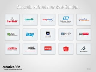 Das Dokument bietet eine Übersicht über die Herausforderungen und Anforderungen von SEO und SEA im B2B-Bereich, einschließlich der geringen Kenntnisse über Suchverhalten und Keywords. Es betont die Komplexität der Auswahl geeigneter Keywords sowie die Notwendigkeit einer intensiven manuellen Optimierung. Erfolgreiche Strategien erfordern ein tiefes Verständnis der Themen und eine gezielte Datenanalyse.