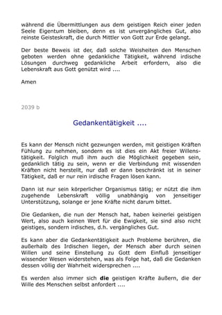 Das Dokument behandelt die Unterscheidung zwischen irdischer und geistiger Wissensvermittlung. Es wird betont, dass geistige Erkenntnisse nur durch den Willen des Menschen und durch den Kontakt mit höheren, geistigen Kräften erlangt werden können, während irdische Fragen rein verstandesmäßig gelöst werden können. Der Text hebt hervor, dass wahres geistiges Wissen unvergänglich ist und im Gegensatz zu vergänglichen irdischen Gedanken steht.