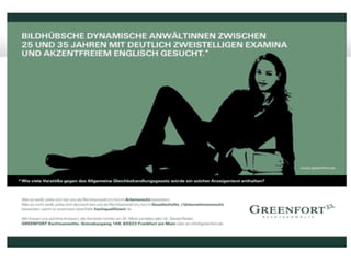 Das Dokument behandelt die Ergebnisse und Entwicklungen von Job- und Gehaltsbenchmarks sowie die Vorstellung von Initiativen zur Verbesserung der Personalarbeit, insbesondere über die Plattform faire-karriere.de. Es werden Zugriffsstatistiken auf Stellenanzeigen, die Selbstbewertung von Organisationen zu Personalthemen und die Bedeutung der Erstellung AGG-konformer Stellenanzeigen aufgeführt. Zudem wird auf die Priorisierung von Themen wie Mitarbeitermotivation, Führungsqualität und Innovationsförderung hingewiesen.