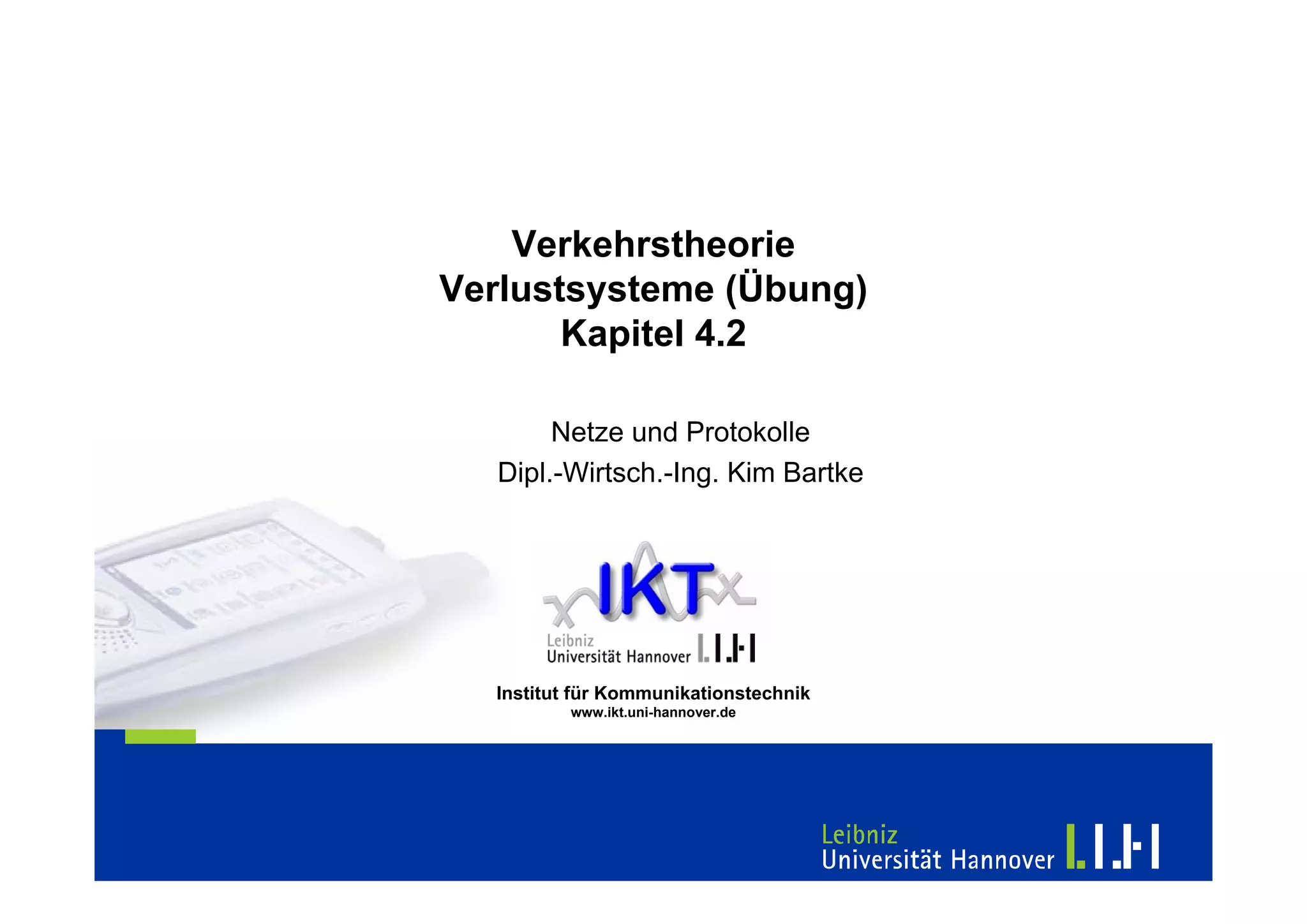 Das Dokument behandelt zwischenleitungsanordnungen in der Verkehrstheorie, insbesondere drei-stufige Koppelanordnungen. Es werden Eigenschaften, Möglichkeiten zur Erhöhung der Erreichbarkeit sowie Berechnungen der Verlustwahrscheinlichkeiten für bestimmte Verbindungen in digitalen Vermittlungsknoten besprochen. Es werden auch Unterschiede zwischen Verlust- und Wartesystemen erläutert und mathematische Beziehungen zur Bestimmung von Verlustwahrscheinlichkeiten abgeleitet.
