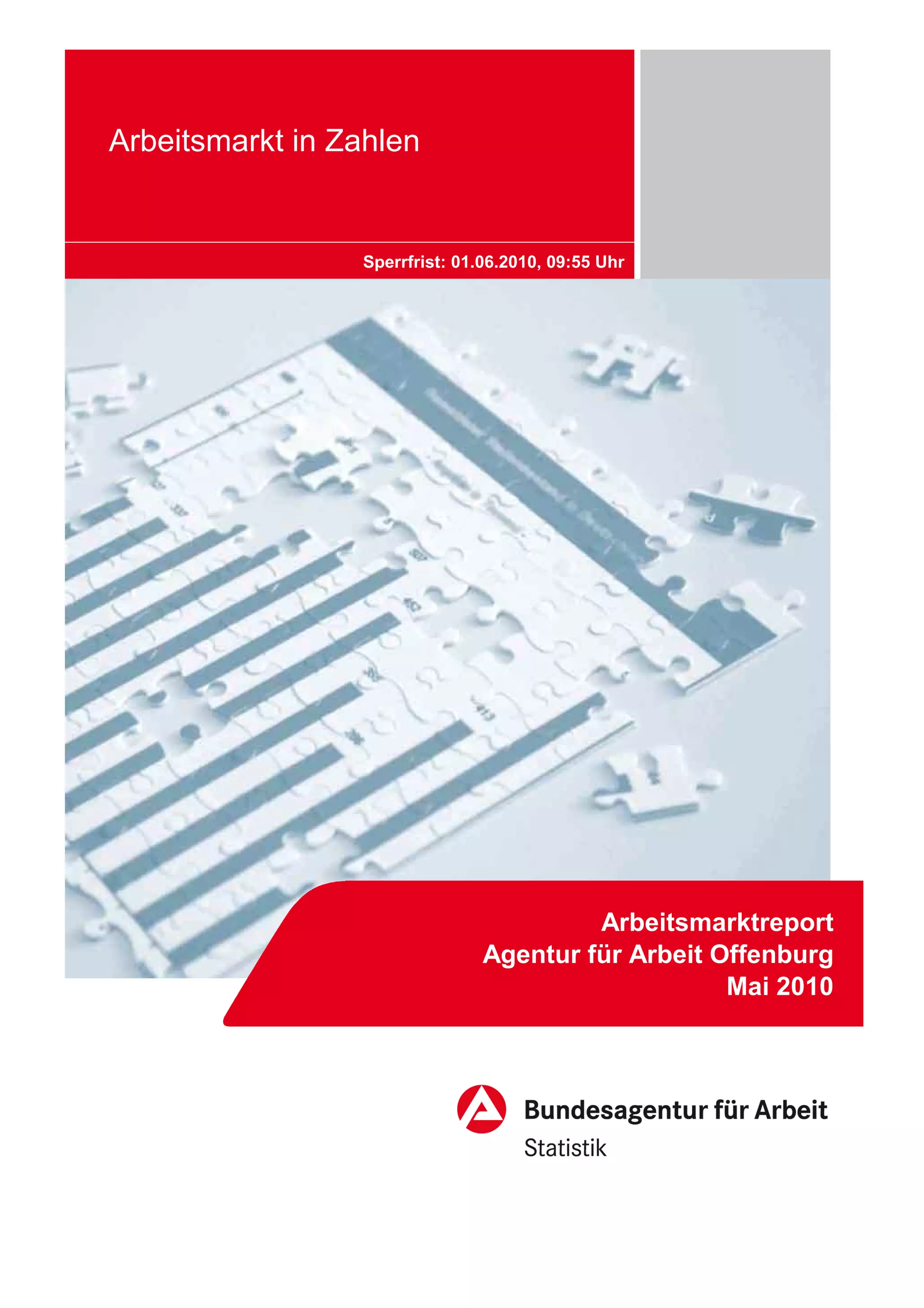 Im Mai 2010 verzeichnete die Agentur für Arbeit Offenburg einen Rückgang der Arbeitslosigkeit um 817 auf 10.143 Personen, was einer Quote von 4,5% entspricht. Im Vergleich zum Vorjahr gab es 1.149 Arbeitslose weniger, wobei die Arbeitslosigkeit unter jüngeren Menschen (15-25 Jahre) besonders stark zurückging. Zudem wurden im Mai 1.585 Stellen registriert, was einen Anstieg im Vergleich zum Vorjahr darstellt.