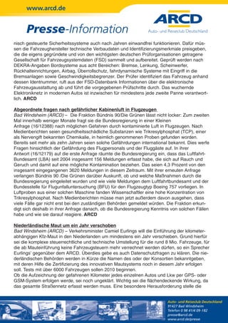 Die weltweite Autoproduktion wird 2009 voraussichtlich um 19% auf 52,8 Millionen Fahrzeuge sinken, besonders stark in Nordamerika. Die Hauptuntersuchung von Fahrzeugen wird künftig auch die Sicherheitselektronik stärker berücksichtigen, und es gibt Bedenken bezüglich gesundheitsschädlicher Kabinenluft in Flugzeugen. Zudem wird die Einführung einer niederländischen Pkw-Maut um ein Jahr verschoben, während die EU neue Sicherheitsstandards für Flugunternehmen festlegt.