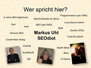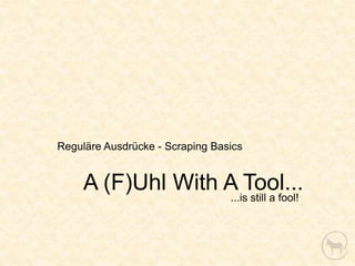 Das Dokument bietet eine umfassende Einführung in reguläre Ausdrücke (Regex), ihre Anwendungen im Web-Scraping und zeigt verschiedene Syntax-Elemente zur Identifikation und Bearbeitung von Textmustern. Es behandelt spezifische Funktionen, einschließlich der Verwendung von Metazeichen, Modifiern und Klassen, sowie deren Einsatz in Programmiersprachen und Tools wie Perl, XPath und Google Analytics. Zudem werden praktische Tipps und Werkzeuge für das Scraping von Webseiten vorgestellt, um effizient Informationen zu extrahieren, ohne gegen die Nutzungsrichtlinien zu verstoßen.