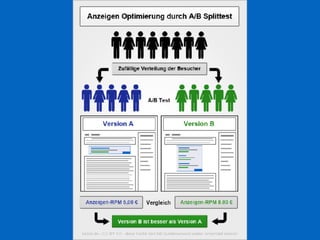 Das Dokument behandelt A/B-Testing und Multivarianten-Testing, um die Wirksamkeit von verschiedenen Versionen einer Anwendung zu prüfen. Es beschreibt den Ablauf des Tests, die Hypothesenformulierung, die Implementierung sowie die Unterschiede zwischen frontendbasierten und serverseitigen Tests. Auch Tools wie Optimizely und Sixpack sowie Fallstricke bei der Durchführung von Experimenten werden thematisiert.