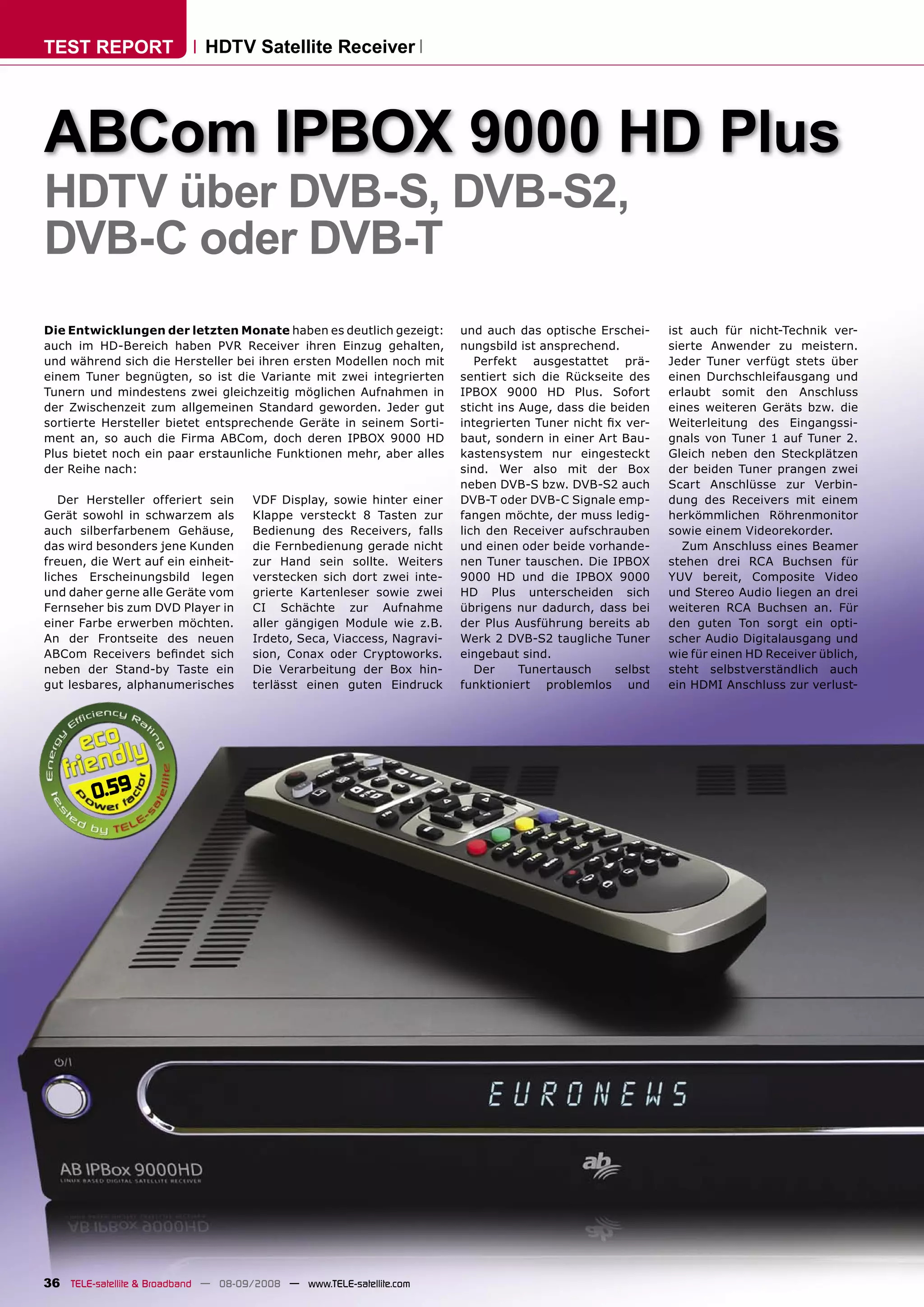 Der Abcom ipbox 9000 HD Plus ist ein umfassender HDTV-Satellitenreceiver, der über mehrere Empfangsoptionen verfügt, darunter DVB-S, DVB-S2, DVB-C und DVB-T, sowie die Möglichkeit, zwei Tuner gleichzeitig zu betreiben. Mit einer Vielzahl von Anschlussmöglichkeiten und integrierten Funktionen wie Timeshift, EPG, und Multimedia-Fähigkeiten bietet das Gerät eine hochwertige Audio- und Videoausgabe. Benutzer können problemlos auf Software-Updates zugreifen und die Konfiguration über einen praktischen Installationsassistenten durchführen.