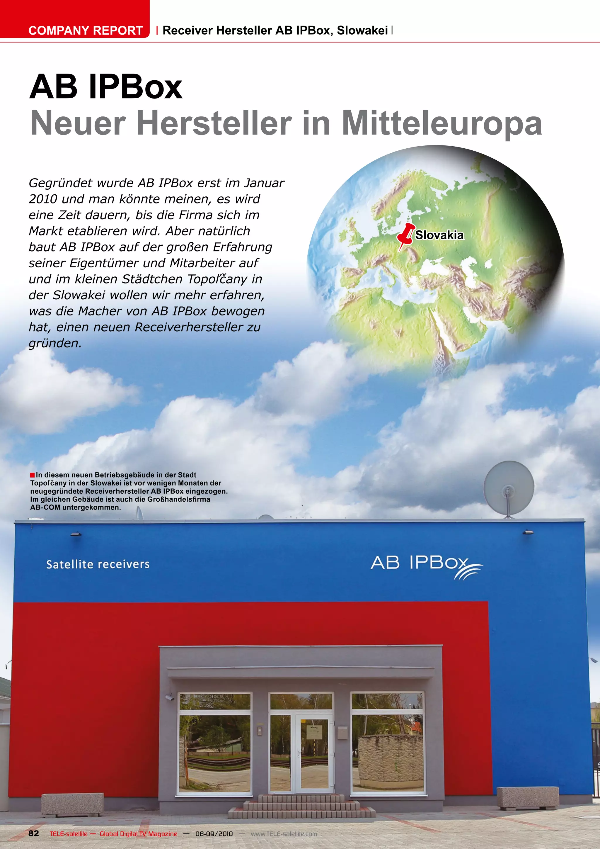 Ab IPBox ist ein neu gegründeter Receiverhersteller in der Slowakei, der im Januar 2010 gegründet wurde und auf den Erfahrungen seiner Eigentümer aufbaut. Das Unternehmen bietet eine breite Palette von Linux-basierten Receivern im High-End-Bereich an und verfolgt eine Strategie, um in verschiedenen europäischen Märkten schnell Fuß zu fassen. Trotz eines anfänglichen Softwarefehlers hat Ab IPBox mit innovativen Produkten und einer diversifizierten Produktpalette das Potenzial für ein schnelles Wachstum gezeigt.