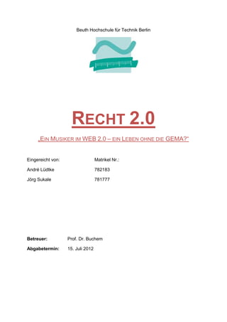 Das Dokument behandelt die rechtlichen Herausforderungen von Musikern im Web 2.0, insbesondere im Kontext des deutschen Urheberrechts und der Rolle der GEMA. Es wird erörtert, wie Creative Commons-Lizenzen eine flexible Möglichkeit bieten, geistiges Eigentum zu schützen und zu verbreiten, während die GEMA als traditionelle Verwertungsgesellschaft eine wichtige Rolle im Lizenzgeschäft spielt. Letztlich wird eine Kombination von GEMA und Creative Commons als potenziell vorteilhaft für Musiker betrachtet, um sowohl Rechte zu wahren als auch eine breitere Zielgruppe zu erreichen.