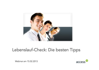 Das Webinar von Access KellyOCG am 15.02.2013 bietet Tipps zur Karriereplanung, Bewerbung und Lebenslaufgestaltung für Studierende und Professionals. Access KellyOCG ist ein führender Karriere-Dienstleister, der seit 1991 mehr als 50.000 Teilnehmer bei Karriere-Events betreut hat und umfassende Informationen über Stellenangebote und Karrierewege bereitstellt. Wichtige Themen umfassen Bewerbungskomponenten, Bewerbungsformate und die Gestaltung eines professionellen Lebenslaufs.