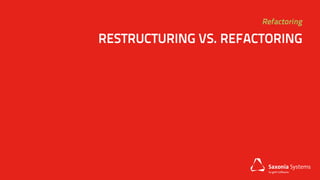 Refactoring bezeichnet die Verbesserung der Struktur von Quelltexten in der Softwareentwicklung, ohne das beobachtbare Verhalten zu verändern, um Lesbarkeit und Wartbarkeit zu erhöhen. Es umfasst kleine, schrittweise Veränderungen, die das Risiko von Fehlern minimieren und die Code-Qualität verbessern. Unterschiedliche Vorgehensweisen und Testmethoden werden beschrieben, um sicherzustellen, dass die gewünschten Veränderungen während und nach dem Refactoring angemessen getestet werden.
