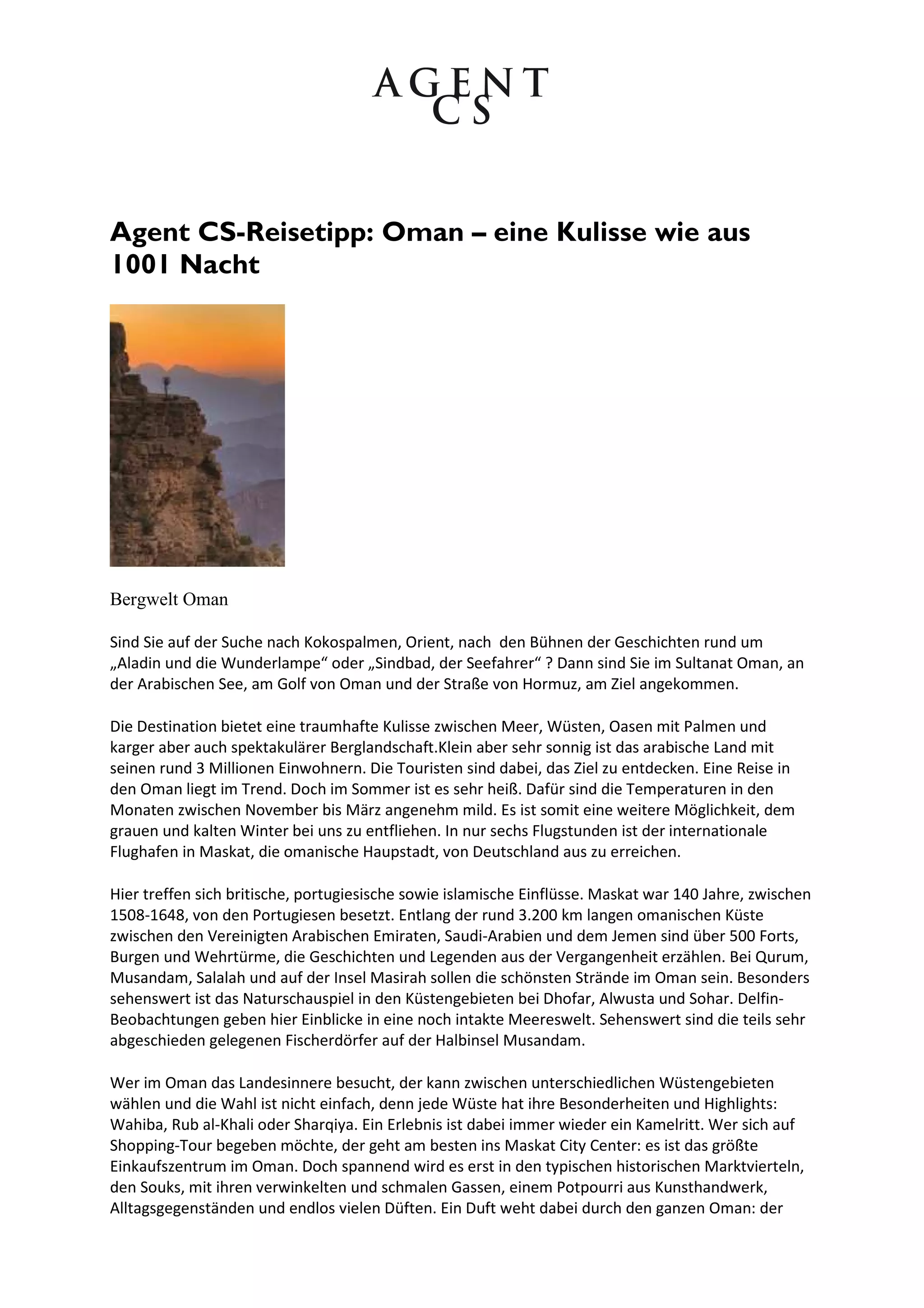 Oman bietet eine beeindruckende Landschaft aus Meer, Wüste und Bergen sowie kulturelle Erlebnisse und historische Stätten, darunter die Sultan-Qabus-Moschee und zahlreiche Forts. Mit milden Temperaturen von November bis März ist das Land ein beliebtes Ziel für Touristen, die diverse Aktivitäten wie Delfinbeobachtungen, Kamelritte und Einkäufe in traditionellen Souks genießen können. Zudem lockt die omanische Küche mit exotischen Gerichten und Gewürzen, während luxuriöse Hotels für einen komfortablen Aufenthalt sorgen.