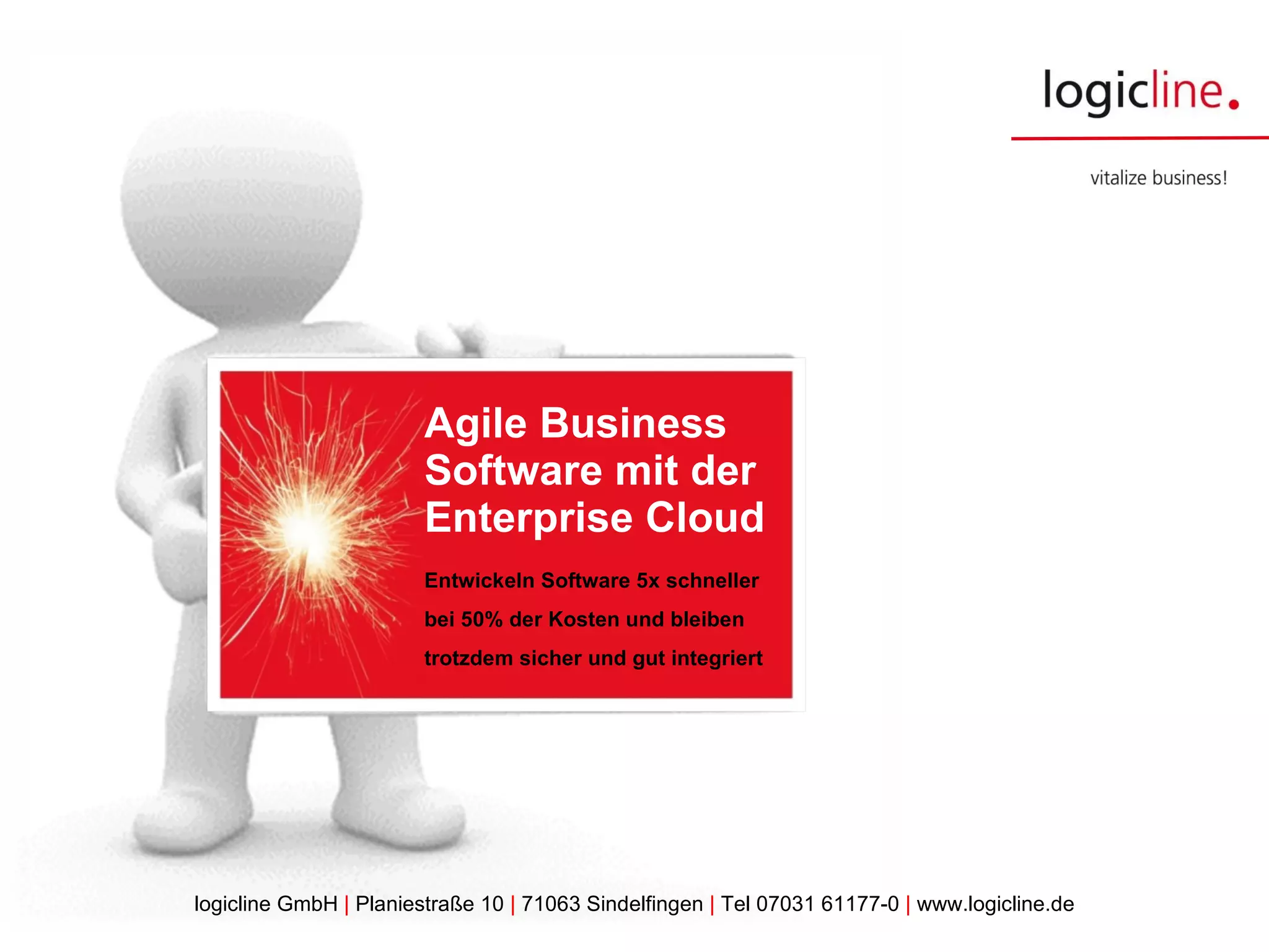 Das Dokument beschreibt die Vorteile der Entwicklung von agiler Unternehmenssoftware in der Enterprise Cloud, die einen schnelleren und kostengünstigeren Ansatz zur Bereitstellung von Softwarelösungen bietet. Es hebt die Bedeutung von Innovationsdruck, kontinuierlicher Verbesserung und Prozessoptimierung hervor und stellt die Logicline-Sprints vor, die eine schnelle Umsetzung von Softwareideen in nur vier Wochen ermöglichen. Die Enterprise Cloud wird als sichere, transparente und anpassbare Lösung präsentiert, die Unternehmen jeder Größe ermöglichen kann, effizienter zu arbeiten und Kosten zu senken.